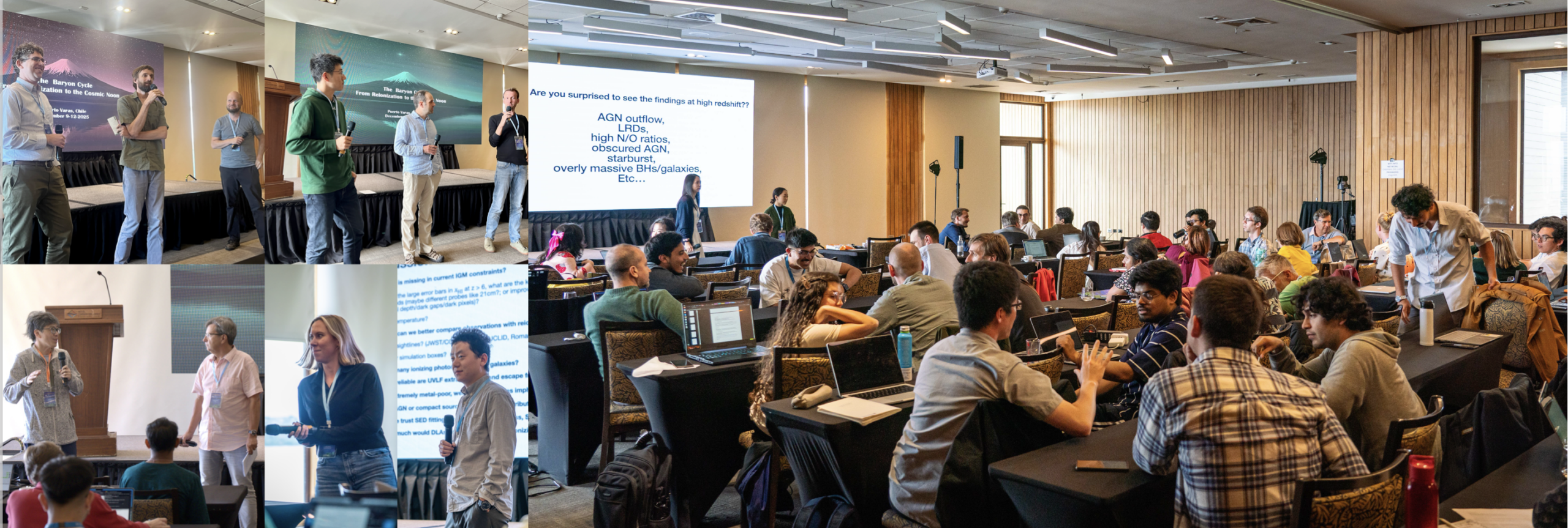 会议邀请了多位国际知名专家作大会综述报告,内容涵盖高红移星系中气体与宿主星系及其环境之间相互作用的观测研究与数值模拟,国际最新观测设施(包括三十米级望远镜 ELT 等)在重子循环研究中的应用,第一代恒星与最早期星系形成的前沿观测与理论进展,以及活动星系核和宇宙“小红点”在星系形成与宇宙大尺度结构演化中的作用。这些报告为理解重子在多尺度结构中的循环机制提供了新的视角与思路。受邀报告人包括法国里昂天体物理研究中心教授、VLT MUSE 仪器首席科学家 Roland Bacon 教授,4MOST 仪器科学家 Jens Kristian Krogager,麻省理工学院天文系主任 Rob Simcoe 教授,巴黎天体物理实验室 Hakim Atek 研究员,东京大学 Masami Ouchi 教授及 Enrico Garaldi 研究员,北京大学王菁教授,清华大学李辉教授,意大利国家天体物理研究所 Valentina D’Odorico、Fabio Vito 和 Roberta Tripodi 研究员,智利瓦尔帕莱索天主教大学 Nicolas Tejos 教授,西北大学 Claude André Faucher Giguère 教授,海德堡大学 Ralf Klessen 教授,Dylan Nelson 教授,印度大学间天文与天体物理中心 Sowgat Muzahid教授,密歇根大学王飞格研究员,普林斯顿大学 Grace Telford 研究员,卡内基天文台 Maren Cosen 与 Mandy Chen 研究员,以及杜伦大学 Louise Welsh 研究员。
